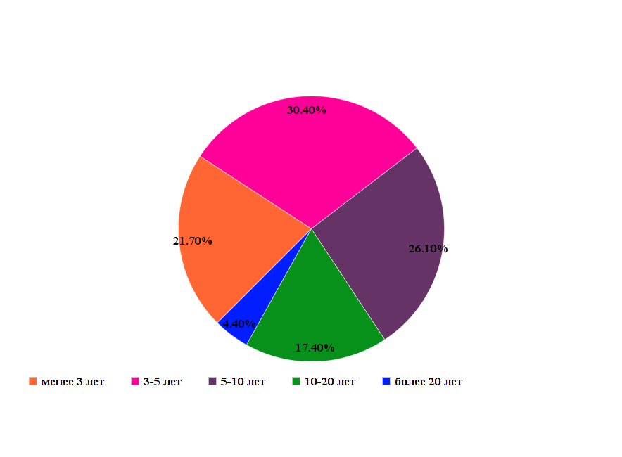 менее 3 лет — 21,7%