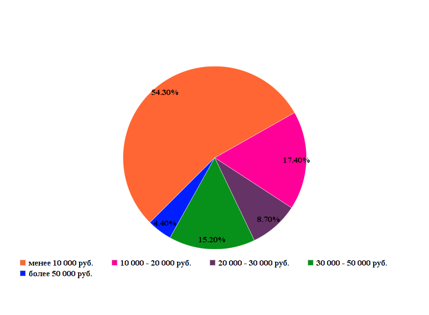 менее 10 000 руб. - 54,3%